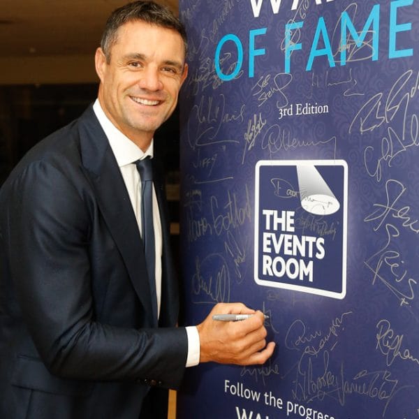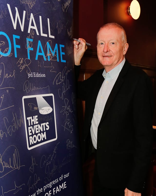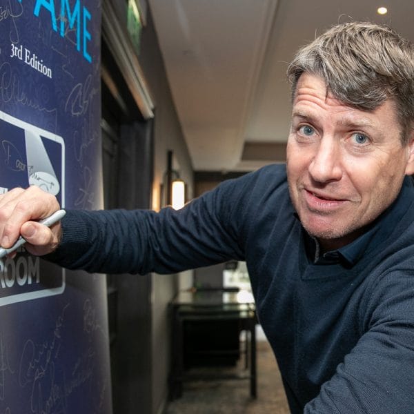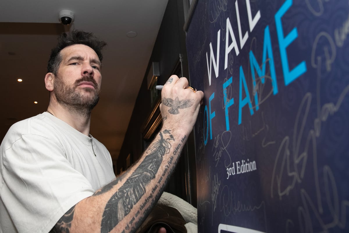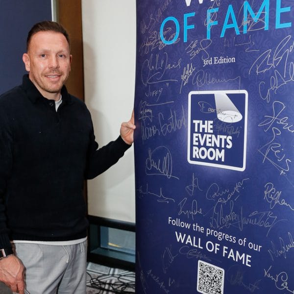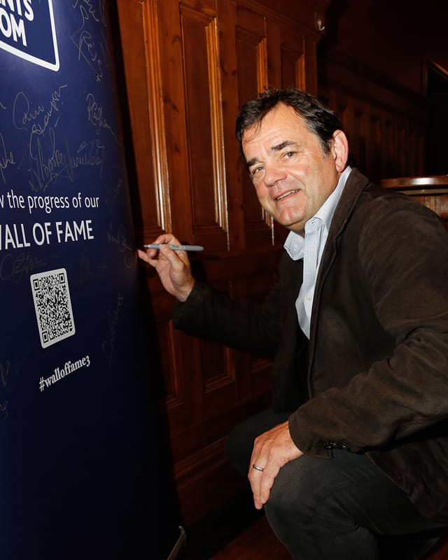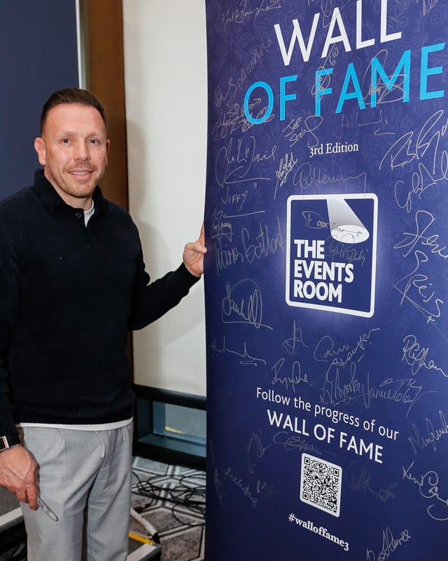Our 3rd edition ‘Wall of Fame’ which currently includes the signatures of Rob Brydon MBE, Sir Bradley Wiggins CBE, Alun Wyn Jones OBE, Michael Vaughan OBE , Craig Bellamy, Kevin Sinfield CBE, Dan Carter ONZM and our current 2025 ‘Speaker of the Year’ David Flatman.